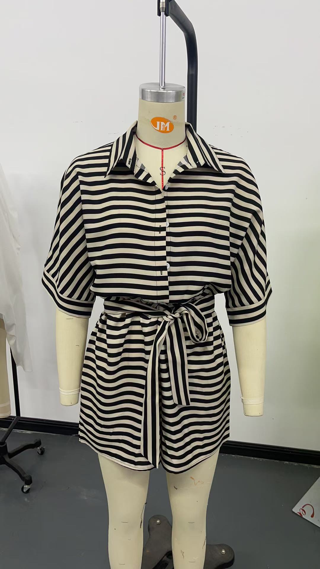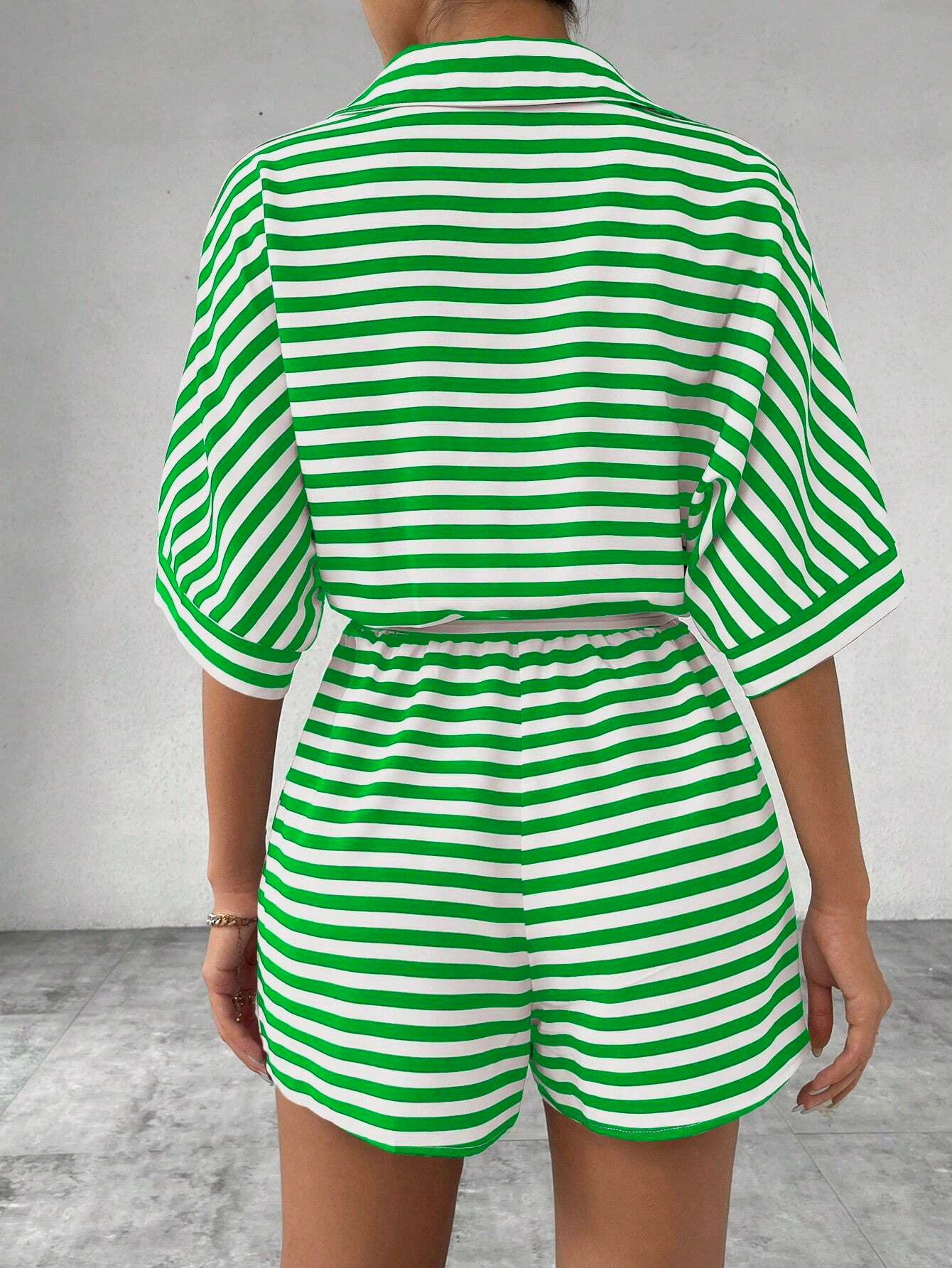 Stylish Design: Features a striped lapel cardigan and matching shorts for a trendy look.